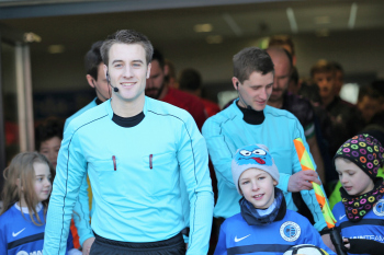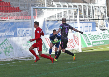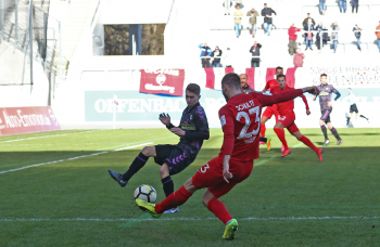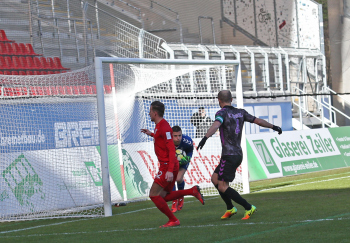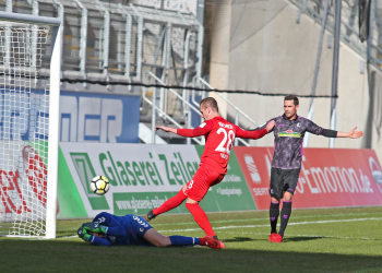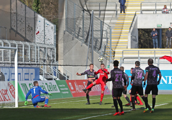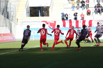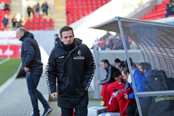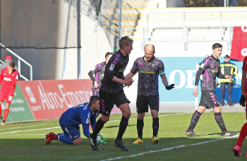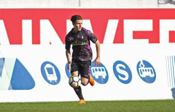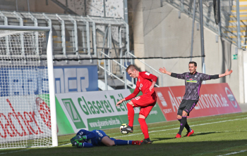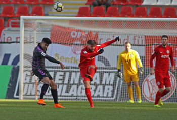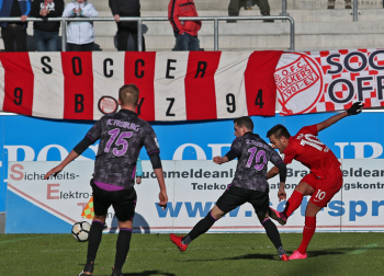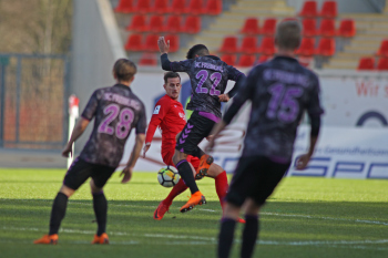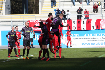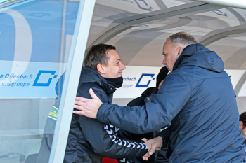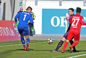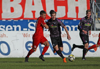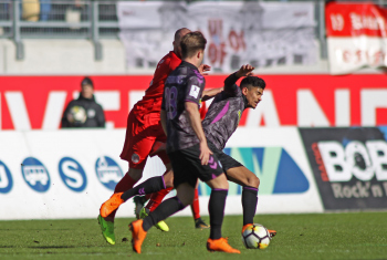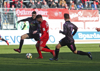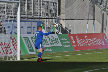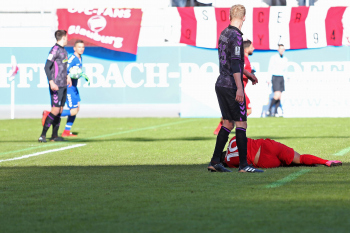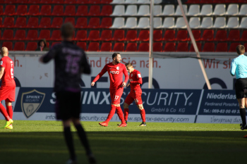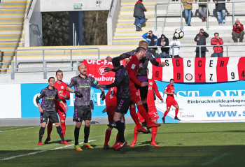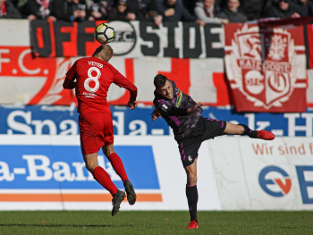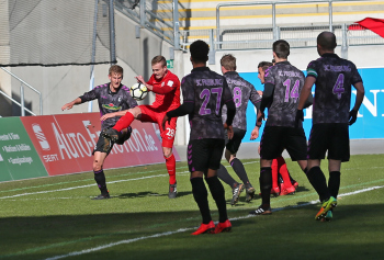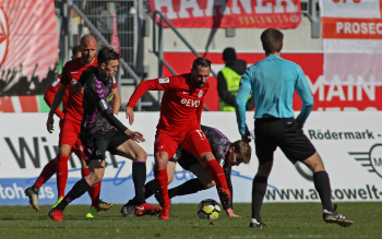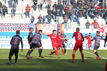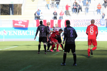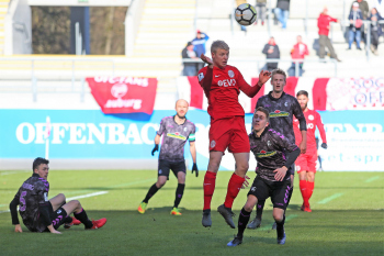 24.02.2018, xxx, Fussball Regionalliga, Kickers Offenbach - SC Freiburg II, emspor, v.l. Patrick Klandt Torwart (SC Freiburg II), Niklas Hoffmann (SC Freiburg II), Benjamin Kirchhoff (Kickers Offenbach), Chima Okoroji (SC Freiburg II), Christoph Daferner (SC Freiburg II), Keven Schlotterbeck (SC Freiburg II), Ivica Banovic Kapitaen (SC Freiburg II),