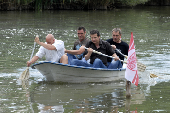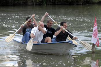 30.07.2008, Seefest 2008, in einem OFC-Boot Co-Trainer Rene Keffel, Reha-Konditionstreiner Bastian Kliem , Manager M?ller und Trainer Hans-J?rgen Boysen