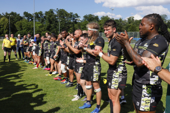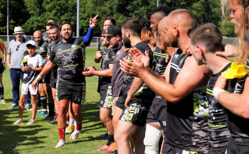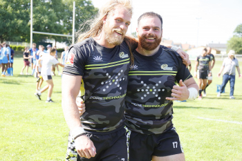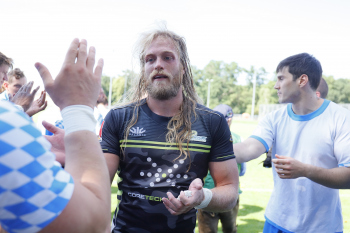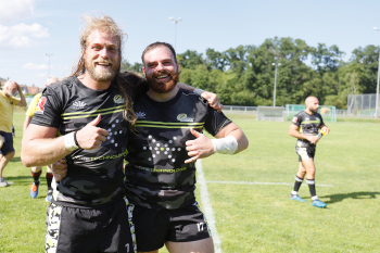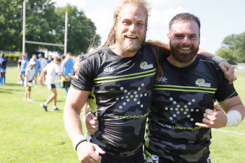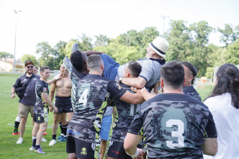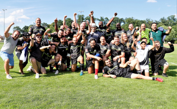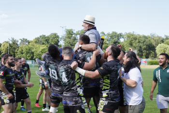 Großer Jubel nach dem Sieg und dem damit verbundenen Aufstieg in die erste Rugby-Bundesliga