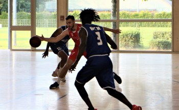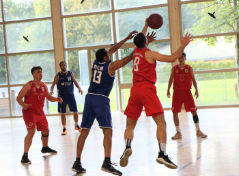12.09.2020 Neu-Ienburg, Sportpark Bakettball OBerliga BC Neu-Isenburg : MTV Gießen Te.Bangang (13, BCN) gegen Mehmed (Giessen) ********** Foto: Peter Hartenfelser