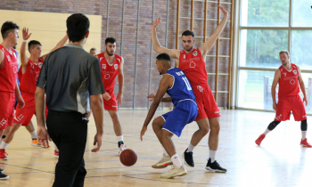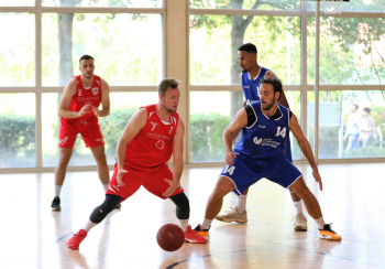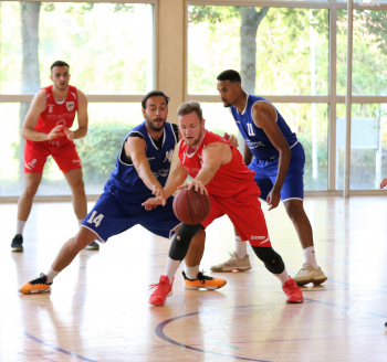 12.09.2020 Neu-Ienburg, Sportpark Bakettball OBerliga BC Neu-Isenburg : MTV Gießen Nicin und Menace (BCN) gegen einen Giessener ********** Foto: Peter Hartenfelser