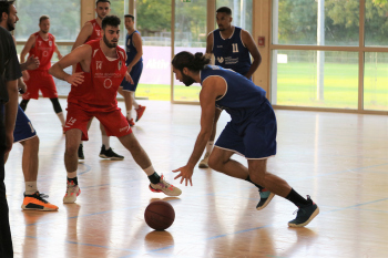 12.09.2020 Neu-Ienburg, Sportpark Bakettball OBerliga BC Neu-Isenburg : MTV Gießen Daniel Hack (5, NI) und Nicin (8, NI) ********** Foto: Peter Hartenfelser
