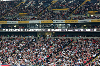 17.09.2016 Frankfurt, Commerzbankarena 1. Bundesliga Fu?ball GER 1.BL 1. BL 2016 2017 (SGE) Eintracht Frankfurt - Bayer 04 Leverkusen Leuchtbanner mit Hinweis zum Heimspiel im DFB-Pokal 2016 gegen Ingolstadt ***** Foto: Peter Hartenfelser