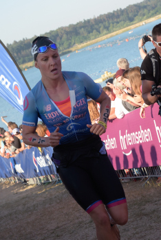 30.06.2019 Langen, Waldsee Mainova IRONMAN European Championship Schwimmen Impressionen Daniela Bleymehl (GER) kommt aus dem Wasser ********** Foto: Peter Hartenfelser