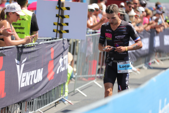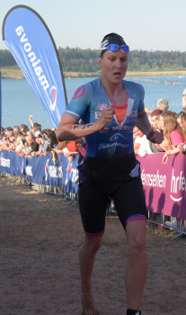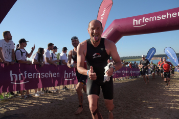 30.06.2019 Langen, Waldsee Mainova IRONMAN European Championship Schwimmen Impressionen Mario Daxer (Saalfelden/AUSTRIA) kommt aus dem Wasser ********** Foto: Peter Hartenfelser