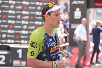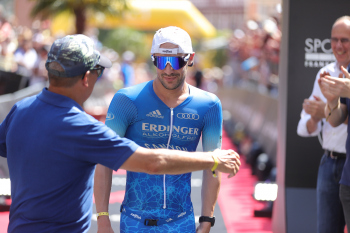 30.06.2019 Frankfurt am Main, Römerberg Mainova IRONMAN European Championship Im Ziel Sebatian Kienle (GER) ********** Foto: Peter Hartenfelser