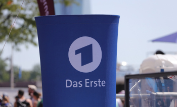 30.06.2019 Frankfurt am Main, Römerberg Mainova IRONMAN European Championship Symbolbild Logo ARD Erstes Deutsches Fernsehen ********** Foto: Peter Hartenfelser