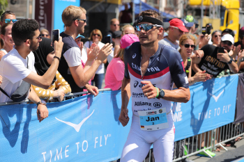 30.06.2019 Frankfurt am Main, Römerberg Mainova IRONMAN European Championship Jan Frodeno (GER) auf der Strecke, die Zuschauern feiern ihn ********** Foto: Peter Hartenfelser