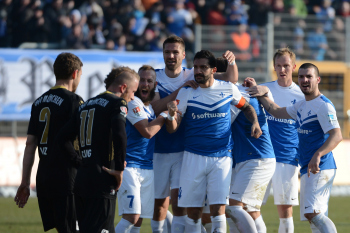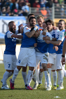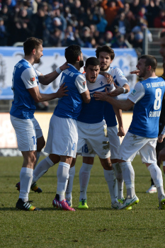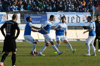 Aktion, Tor, Torjubel durch den Torsch?tzen Leon Balagon und Aytac Sulu (Darmstadt), Entt?uscht Daniel Adlung (1860)