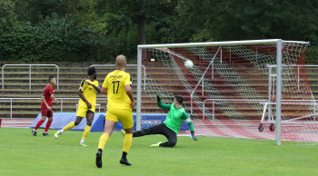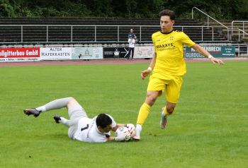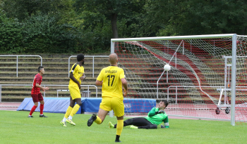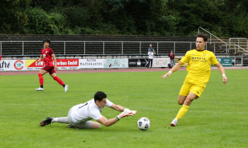 Torwart NEMANJA SAULA (1, Spvgg. 03 Neu-Isenburg) gegen GIUSEPPE SIGNORELLI (Sportfreunde)