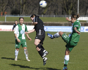 04.03.2007, Saison 2006/07, 1. FFC Frankfurt vs VfL Wolfsburg, Meike Weber vs Nathalie Bock