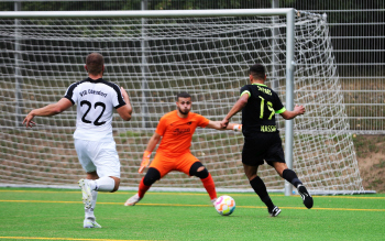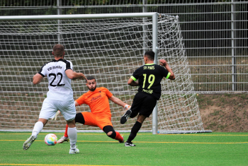 Tor zum 1:0 durch Anis Nassif (19, SV Pars), Torwart Jonnes Maach und Dennis Fedotov ( Oberndorf) ohne Chance