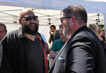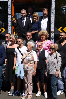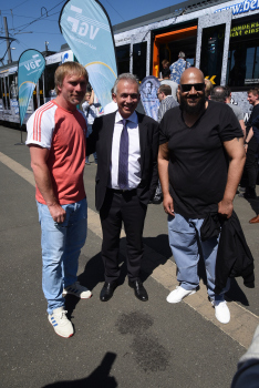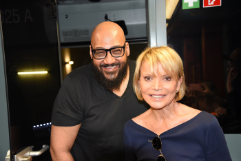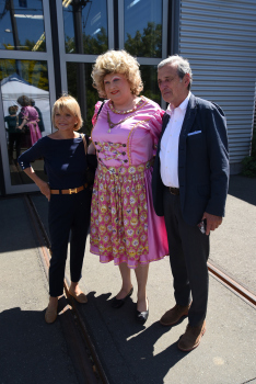 Bild zeigt: Schauspielerin Uschi Glas Thomas Rau (Olga Orange, Travestiestar), und Unternehmer Dieter Hermann,