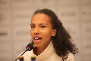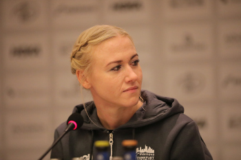 27.10.2023 Frankfurt am Main, Mövenpick-Hotel Pre-Race-Pressekonferenz 40. Mainova Frankfurt Marathon Matea PARLOV KOSTRO (Kroatien) ********* Foto: A2Bildagentur