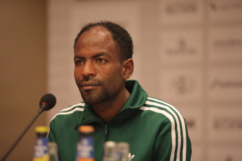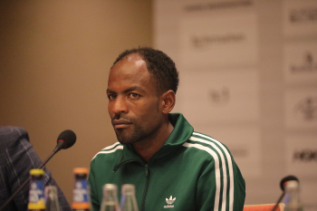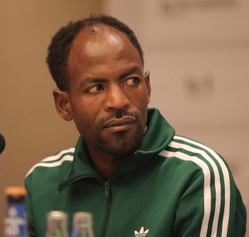 27.10.2023 Frankfurt am Main, Mövenpick-Hotel Pre-Race-Pressekonferenz 40. Mainova Frankfurt Marathon Sieger des Berlin-Marathons von 2021 Guye Adola (Äthiopien) ********* Foto: A2Bildagentur