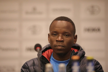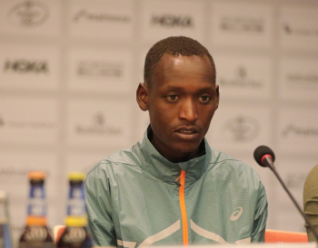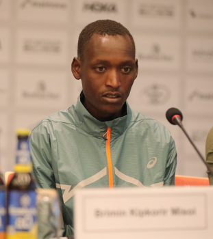 27.10.2023 Frankfurt am Main, Mövenpick-Hotel Pre-Race-Pressekonferenz 40. Mainova Frankfurt Marathon Brimin Kipkorir Misoi ( Kenya) ********* Foto: A2Bildagentur