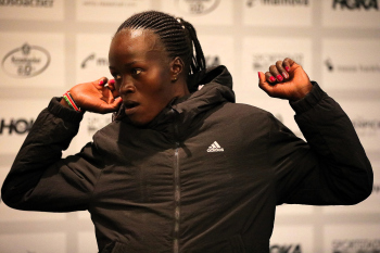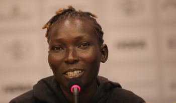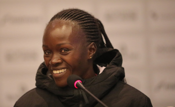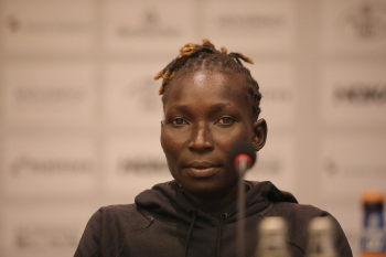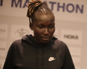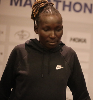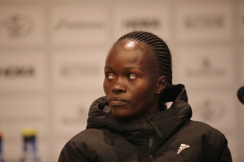 27.10.2023 Frankfurt am Main, Mövenpick-Hotel Pre-Race-Pressekonferenz 40. Mainova Frankfurt Marathon Visiline Jepkesho (Kenia) ********* Foto: A2Bildagentur