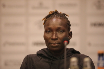 27.10.2023 Frankfurt am Main, Mövenpick-Hotel Pre-Race-Pressekonferenz 40. Mainova Frankfurt Marathon Magdalyne Masai (Kenia) ********* Foto: A2Bildagentur