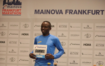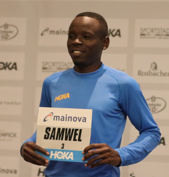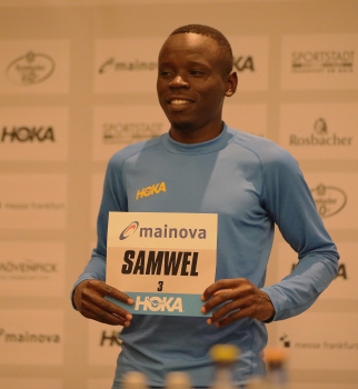 27.10.2023 Frankfurt am Main, Mövenpick-Hotel Pre-Race-Pressekonferenz 40. Mainova Frankfurt Marathon Samwel Nyamai MAILU, (Kenya) ********* Foto: A2Bildagentur