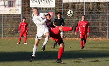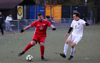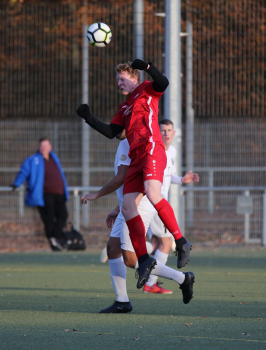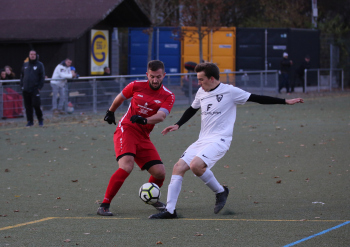 18.11.2018, xmgoodx Saison 2018/2019 FC Neu-Isenburg gegen SUSGO Offenthal FC Neu-Isenburg (Nr.5) Robin Schrankel - SUSGO Offenthal (Nr.12) Julius Wegenast ****** Foto: Peter Hartenfelser