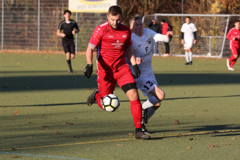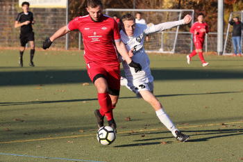 18.11.2018, xmgoodx Saison 2018/2019 FC Neu-Isenburg gegen SUSGO Offenthal FC Neu-Isenburg (Nr.21) Alessandro Pugliese - SUSGO Offenthal (Nr.13) Marius Pentz ****** Foto: Peter Hartenfelser