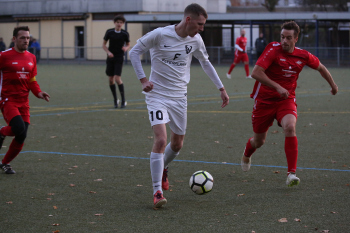 18.11.2018, xmgoodx Saison 2018/2019 FC Neu-Isenburg gegen SUSGO Offenthal FC Neu-Isenburg (Nr.10) Marvin Schindler - SUSGO Offenthal (Nr.14) Dominik Fertr ****** Foto: Peter Hartenfelser