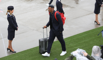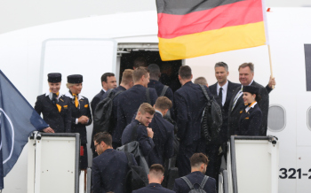 Abflug der Deutschen Nationalmannschaft am Frankfurter Flughafen