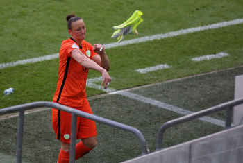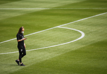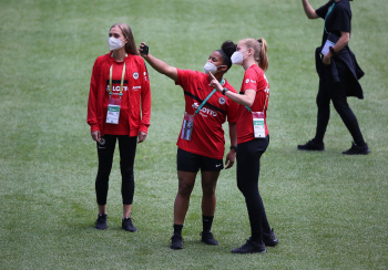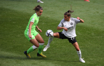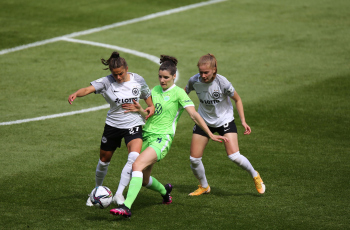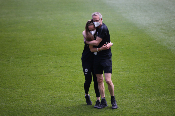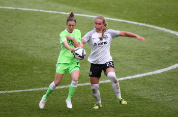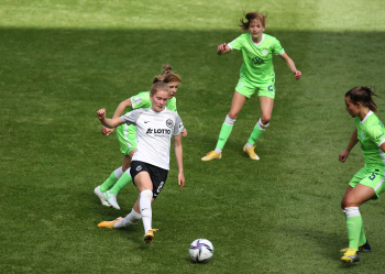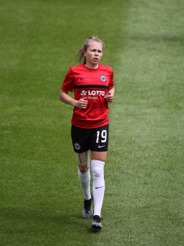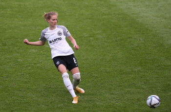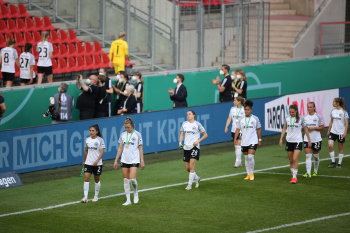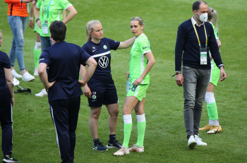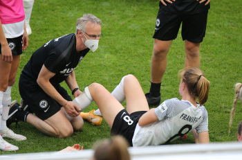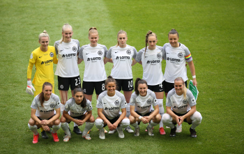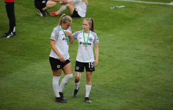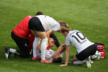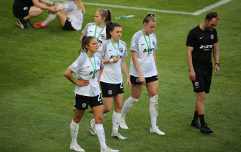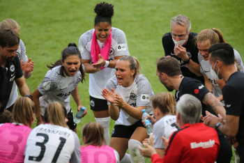 Enttaeuschung nach der Niederlage bei den frankfurter Spielerinnen, enttaeuscht, niedergeschlagen, traurig, Trauer, Laura Feiersinger, Barbara Dunst, Virginia Kirchberger (SGE)