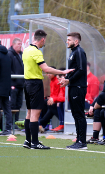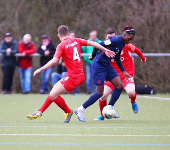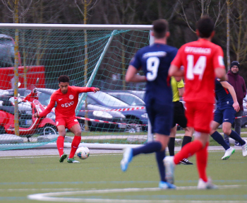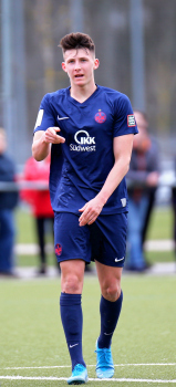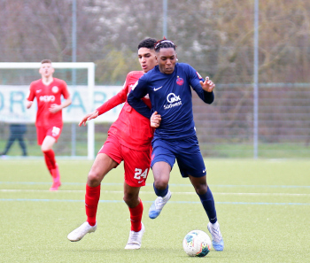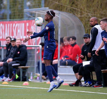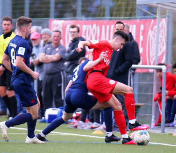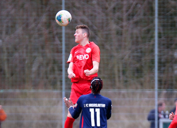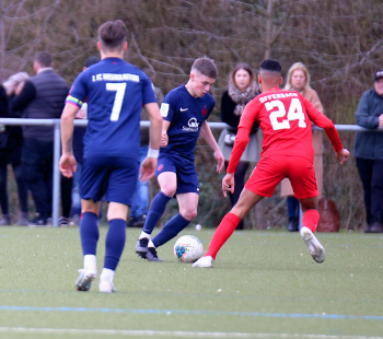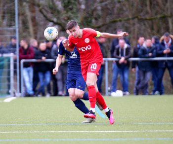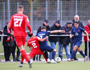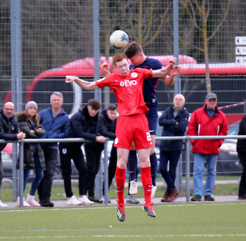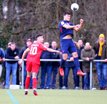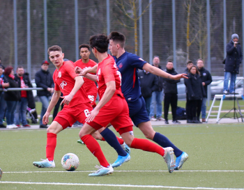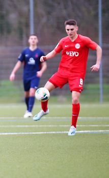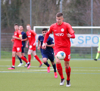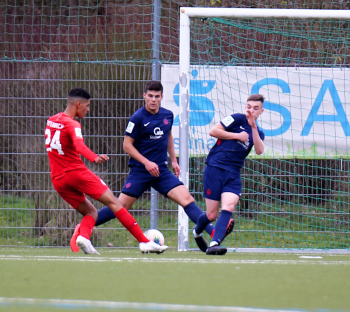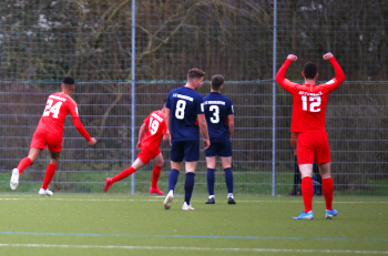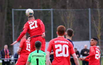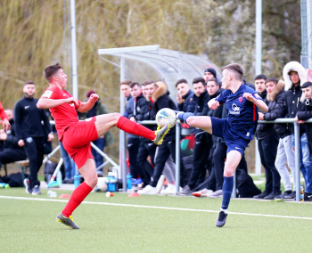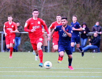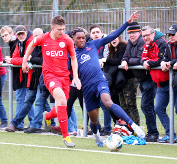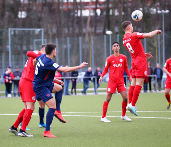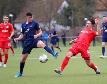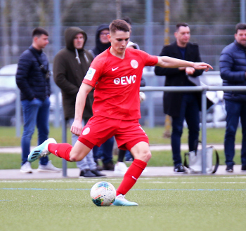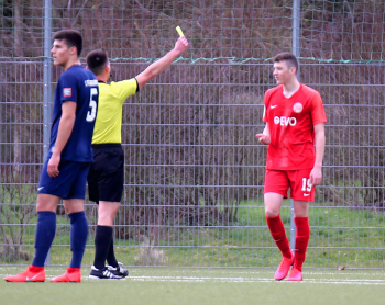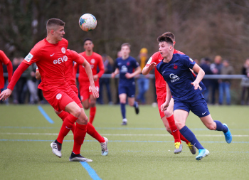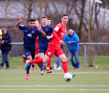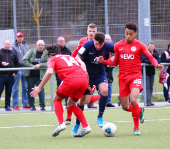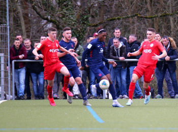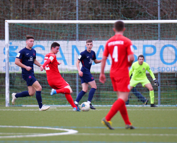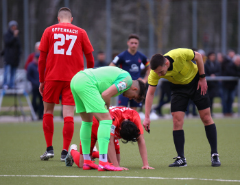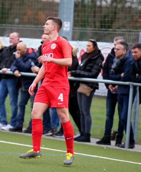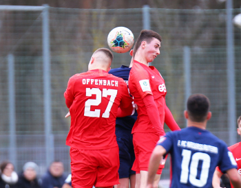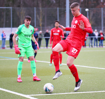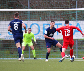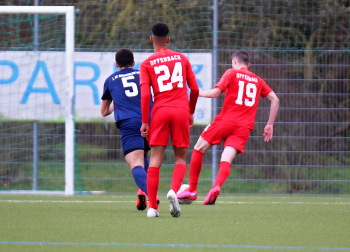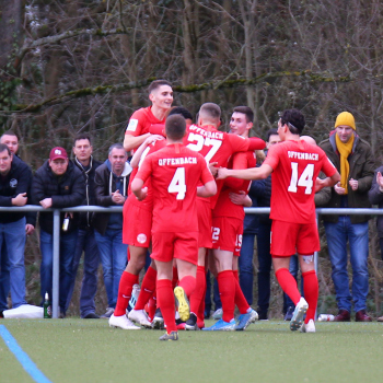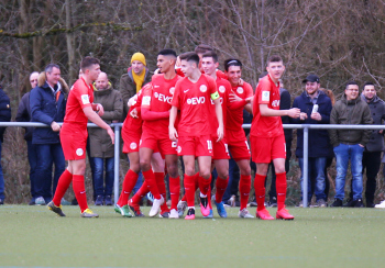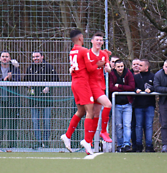 29.02.2020; xxx, Fussball, Sara Sportpark, Offenbach am Main, A-Junioren Bundesliga Sued/Suedwest; Kickers Offenbach OFC gegen 1. FC Kaiserslautern; Jubel nach dem Tor zum 1:0 in der 45. Minute Jubel mit Samuel Puth (Kickers Offenbach OFC); Samuel Puth (Kickers Offenbach OFC);, Denis Huseinbasic Kapitaen (Kickers Offenbach OFC); Fritz Oesterreicher (Kickers Offenbach OFC); Damian Herth (Kickers Offenbach OFC);