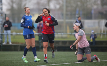 26.01.2025, xcex, GER, Norderstedt, Trainingsplatz Paul-Hauenschild-Anlage, Frauenfussball, Testspiel, Vorbereitung, Winterpause, 2. Frauen-Bundesliga, Googel-Pixel Frauen Bundesliga, Saison 2024/2025, HSV Frauen (HSV) - 1. FFC Turbine Potsdam (TP), Lisa Baum (HSV), Torjubel, Jubel, Freude, Emotionen, goal celebration HSV Frauen