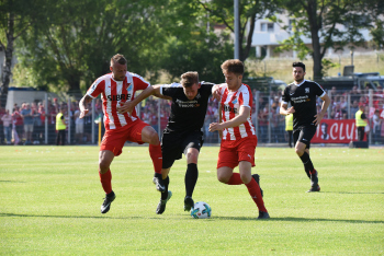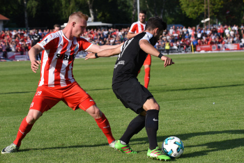 21.05.2018 xkhx Stadtallendorf Hessenpokalfinale 2018 TSV Steinbach gegen KSV Hessen Kassel Schmeer Sebastian (7, KSV Hessen Kassel) rechts Dino Bisanovic (TSV Steinbach) ****** Foto: Peter Hartenfelser