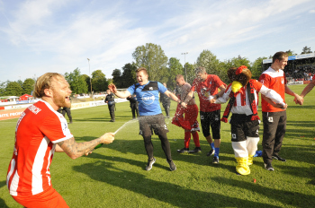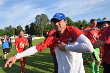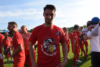 21.05.2018 xkhx Stadtallendorf Hessenpokalfinale 2018 TSV Steinbach gegen KSV Hessen Kassel Nico Herzig (TSV Steinbach) mit der obligatorischen Sektdusche für jedermann ****** Foto: Peter Hartenfelser