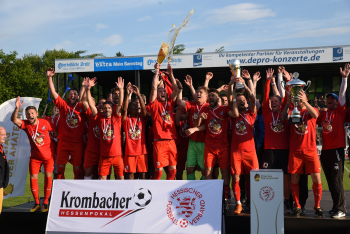 21.05.2018 xkhx Stadtallendorf Hessenpokalfinale 2018 TSV Steinbach gegen KSV Hessen Kassel Jubel über den Hessenpokal ****** Foto: Peter Hartenfelser