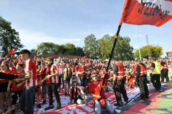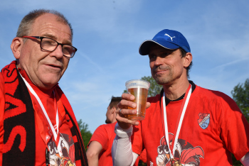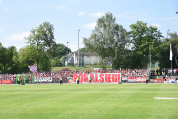 21.05.2018 xkhx Stadtallendorf Hessenpokalfinale 2018 TSV Steinbach gegen KSV Hessen Kassel Symbolbild Fans davor Banner POKALSIEG ****** Foto: Peter Hartenfelser