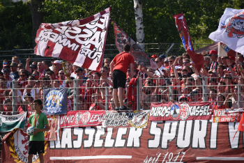 21.05.2018 xkhx Stadtallendorf Hessenpokalfinale 2018 TSV Steinbach gegen KSV Hessen Kassel auch die Kasseler Fans geben für die Mannschaft alles, Fahnen, Banner ****** Foto: Peter Hartenfelser