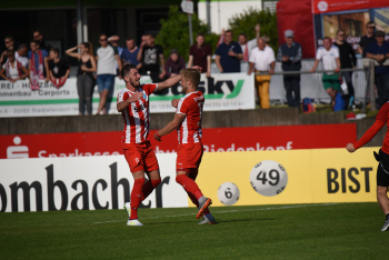 21.05.2018 xkhx Stadtallendorf Hessenpokalfinale 2018 TSV Steinbach gegen KSV Hessen Kassel Torjubel bei TSV Steinbach u.a. Marwuet Sascha und Fatih Candan (TSV Steinbach) ****** Foto: Peter Hartenfelser