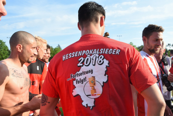 21.05.2018 xkhx Stadtallendorf Hessenpokalfinale 2018 TSV Steinbach gegen KSV Hessen Kassel Jubel bei den Pokalsiegern (TSV Steinbach) ****** Foto: Peter Hartenfelser