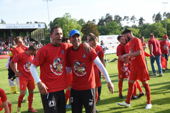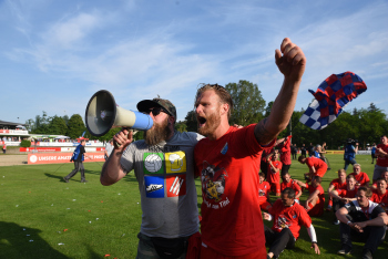 21.05.2018 xkhx Stadtallendorf Hessenpokalfinale 2018 TSV Steinbach gegen KSV Hessen Kassel Der Hessenpokalsieger heißt TSV Steinbach - grosser Jubel der Spieler mit dem Gockel zum Sieg ****** Foto: Peter Hartenfelser