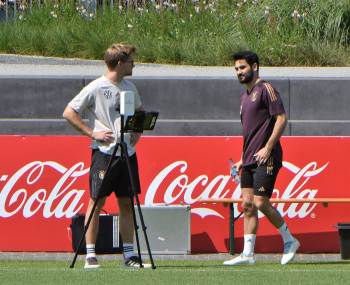 15.06.2023 Frankfurt am Main, DFB-Campus DFB Training der Deutschen Nationalmannschaft hier kommt Ilkay Gundogan (GER) zum Training und schaut sich das Traininsvideo an ********* Foto: Peter Hartenfelser