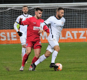 21.03.2023 xkhx Kassel Auestadion Regionalliga Südwest Saison 2022/2023 KSV Hessen Kassel - VfR Aalen STEFFEN KIENLE (Aalen) gegen Alban Meha (28, Hessen Kassel) ********* Foto: Peter Hartenfelser