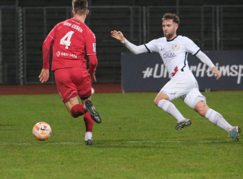 21.03.2023 xkhx Kassel Auestadion Regionalliga Südwest Saison 2022/2023 KSV Hessen Kassel - VfR Aalen KRISTJAN ARH CESEN (Aalen) gegen Nils Stendera (26, Hessen Kassel) ********* Foto: Peter Hartenfelser