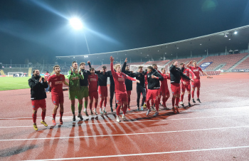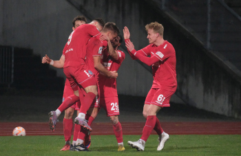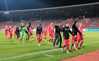 21.03.2023 xkhx Kassel Auestadion Regionalliga Südwest Saison 2022/2023 KSV Hessen Kassel - VfR Aalen Jubel Nach dem 1:2 Sieg feiern die Spieler des VfR Aalen ********* Foto: Peter Hartenfelser