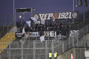 21.03.2023 xkhx Kassel Auestadion Regionalliga Südwest Saison 2022/2023 KSV Hessen Kassel - VfR Aalen Begeisterung bei den mitgereiten Fans des VfR Aalen ********* Foto: Peter Hartenfelser