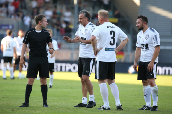 03.06.2018 xcex Deutschland, Wiesbaden, Fussball SunExpress Legendenspiel, Spiel der Legenden Deutschland - Tuerkei die deutschen Spieler reklamieren, beschweren sich beim Schiedsrichter ***** Foto: A2/Hartenfelser