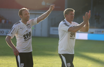 03.06.2018 xcex Deutschland, Wiesbaden, Fussball SunExpress Legendenspiel, Spiel der Legenden Deutschland - Tuerkei Trainer Otto Rehhagel und Fredi Bobic (beide Deutschland) an der Seitenlinie ***** Foto: A2/Hartenfelser