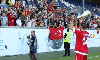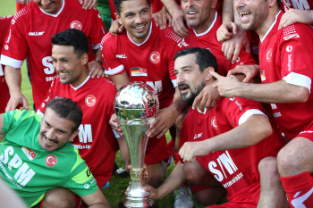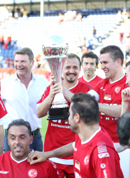 03.06.2018 xcex Deutschland, Wiesbaden, Fussball SunExpress Legendenspiel, Spiel der Legenden Deutschland - Tuerkei die tuerkischen Spieler feiern den Sieg, Pokal, Gewinn, Feier, Jubel, Emotionen ***** Foto: A2/Hartenfelser