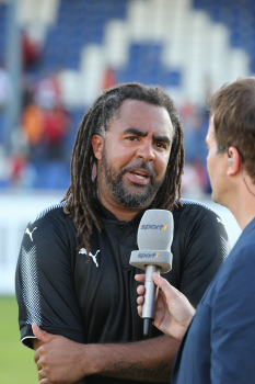 03.06.2018 xcex Deutschland, Wiesbaden, Fussball SunExpress Legendenspiel, Spiel der Legenden Deutschland - Tuerkei Patrick Owomoyela (Deutschland) im Interview ***** Foto: A2/Hartenfelser