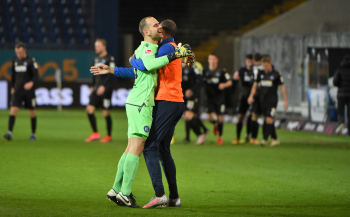 Torwart Marius Gersbeck (KSC) gegen Dursun, Serdar (19) SV Darmstadt 98