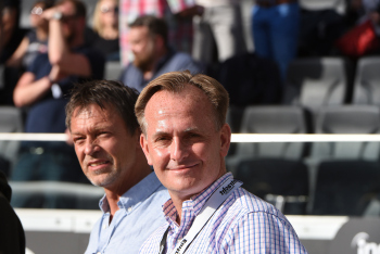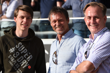 zu Besuch bei der Eintracht Frankfurt der norwegische U19-Nationalspieler Sander Christiansen (Verein Brann Bergen) hier mit seinem Vater und Eintrachts Nachwuchs-Chef Armin Kraatz