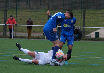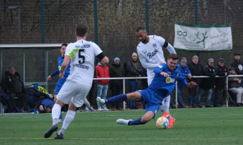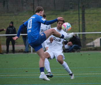 18.02.2023 xkhx Stadtallendorf Bitburger Hessenpokal 2022/2023 Viertelfinale Eintracht Stadtallendorf - FSV Frankfurt ONUR ÜNLÜCIFCI (33, FSV Frankfurt) gegen ANDREJ MARKOVIC und rechts Arne Schütze (Eintracht Stadtallendorf) ********* Foto: Peter Hartenfelser